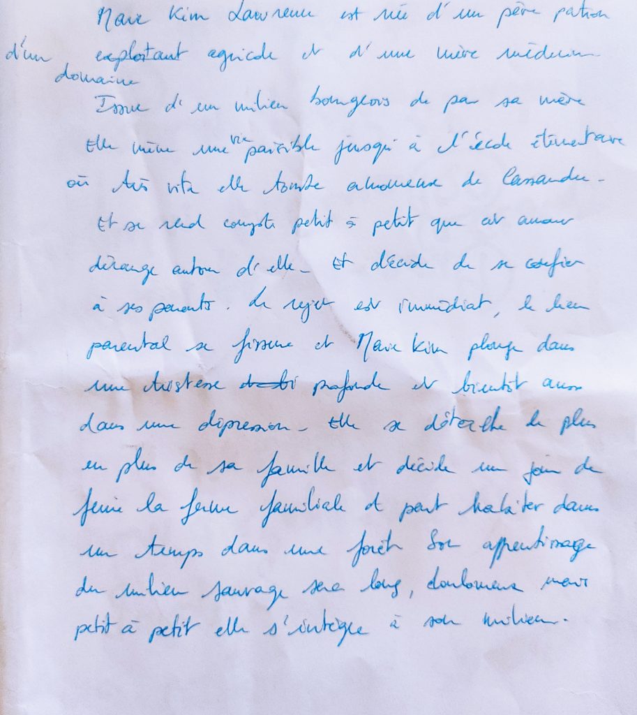 Lucette , ce n’est pas quelqu’un qui veut tout commander, elle veut juste que la paix soit solide, que les fruits poussent et que la ferme tourne. Pas d’autre ambition. Mais il y a toujours dans les cultures et les climats quelque chose qui menace de ne pas tenir debout. Elle voudrait juste avoir plus de terres, pour être sûre que tous habitent et vivent non loin, aient de quoi manger. de quoi manger. c’est son obsession calme qui passe dans ses yeux ce soir pendant que les couteaux font crish crish. Des terres et des maisons pour accueillir les femmes et les enfants nouveaux. Et pour nourrir tout le monde.